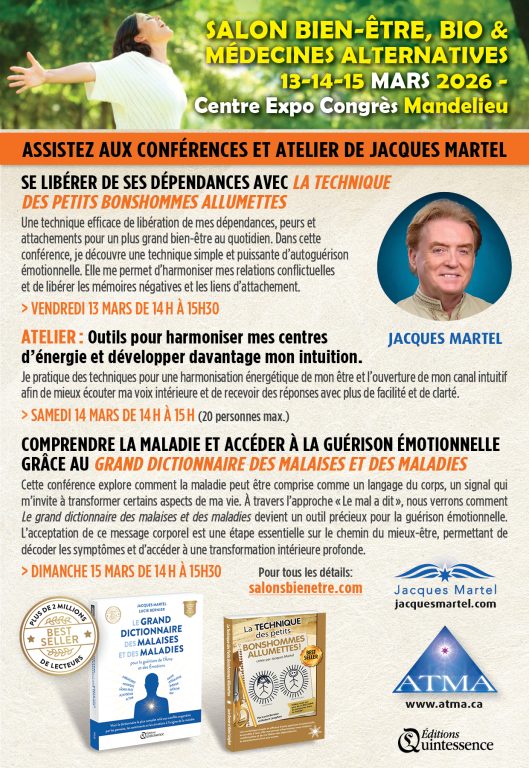 M. Jacques Martel vous invite à suivre les activités dans la section événements. De plus, visitez la zone vidéos offrant plusieurs entrevues et techniques gratuites de croissance personnelle.